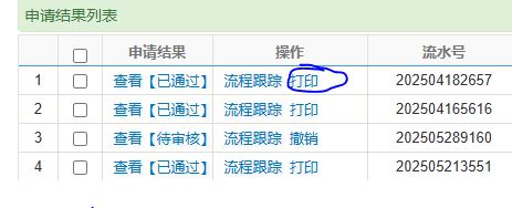 6.审批通过后,在“申请结果列表”中单击“打印”
